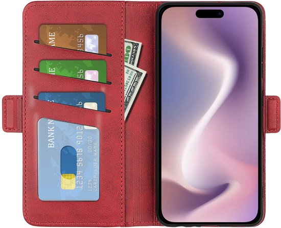 Étui adapté pour iPhone 16 - Bookcase - Porte-cartes - Portefeuille - Simili cuir - Rouge