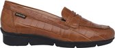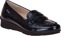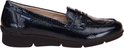 Chaussure femme en cuir verni Blauw imprimé crocodile de la marque Mephisto. La semelle intérieure est amovible, idéale pour les orthèses.