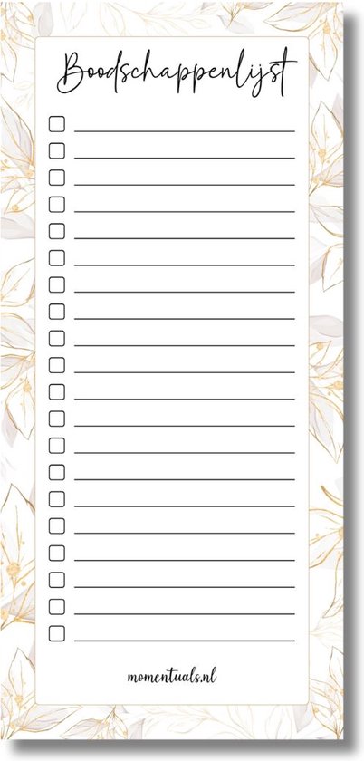 Momentuals - Liste de courses - Liste de courses - Bloc-notes - Bloc-notes pour l'épicerie - 1/3 A4 - 9,8x21cm - Collection Fleur GoldOr
