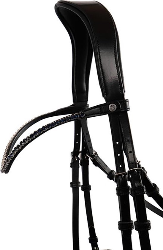 - le frontal se fixe facilement au bridon, grâce au bouton pression de chaque côté