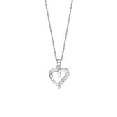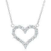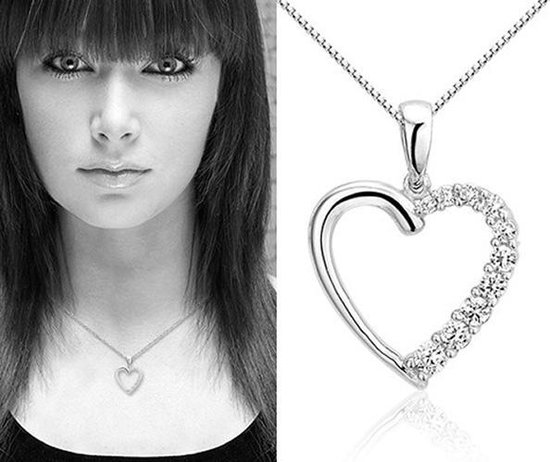 Pendentif en argent en forme de coeur. La moitié du cœur est sertie de 10 zircones rondes. Le cœur mesure 18 x 25 mm. Le pendentif est livré avec une chaîne en argent de 45 cm de long. Les deux bijoux sont en argent sterling 925 rhodiné. Ce sont des bijoux qui ne dégageront pas de noir et conserveront leur belle couleur. Découvrez notre vaste gamme de pendentifs et boucles d'oreilles cœur.