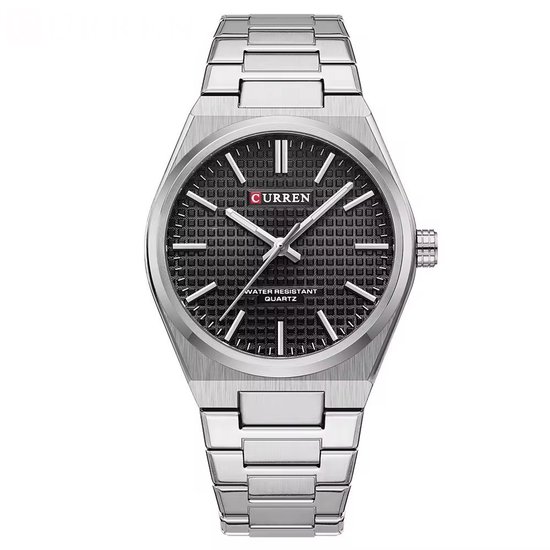 Montre de Luxe Curren | Montre de Luxe pour homme | Quartz | Cadran noir | Bande de couleur Argent | 42 mm