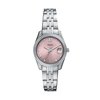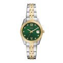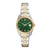 Cette Scarlette de 32 mm possède un cadran vert soleil, un mouvement à trois aiguilles avec date et un bracelet en acier inoxydable bicolore.