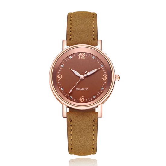 Montre pour femme avec indication des heures élégante et aiguilles marron lumineuses