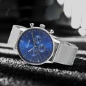 Montres Elysian pour homme - Argent - Maille - Acier inoxydable - Étanche 5 Bar - Glas saphir anti-rayures - Chronographe - Ø 43mm - Montre homme - Cadeau pour homme