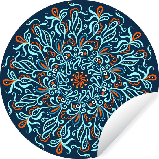 Motif abstrait et carré avec un mandala détaillé sur fond sombre Sticker papier peint cercle mural - 100x100 cm - peinture ronde - cercle papier peint - cercle mural - cercle vivant - autocollant & découpe ronde