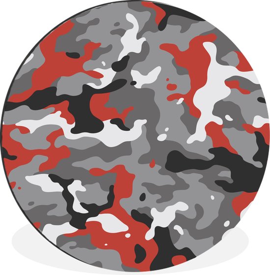 Motif camouflage avec des accents rouges Cercle mural aluminium ⌀ 120 cm - impression photo sur cercle mural / cercle vivant / cercle de jardin (décoration murale)