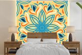 Motif carré d'une fleur détaillée sur fond orange clair 220x220 cm