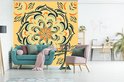 Motif carré d'une fleur détaillée sur fond orange clair 280x280 cm