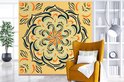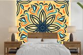 Motif carré d'une fleur détaillée sur fond orange clair 350x350 cm