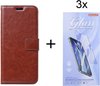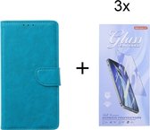 Motorola Moto G22 - Bookcase Turquoise - étui portefeuille avec 3 protections d'écran en Glas