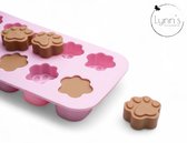 Moule à chocolat Scilicone, le chocolat prend une belle forme. Ce serait 5 étoiles si le caoutchouc était un peu plus ferme. Maintenant, j'avais versé du chocolat liquide dans le moule et je ne pouvais pas le mettre au koelkast sans que tout le contenu ne se mélange dans le moule. Finalement, du karton dur a été placé sous le moule et le problème a été résolu. La forme du chocolat compense pour beaucoup.