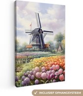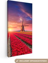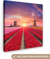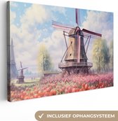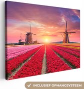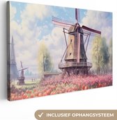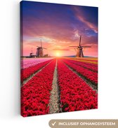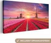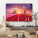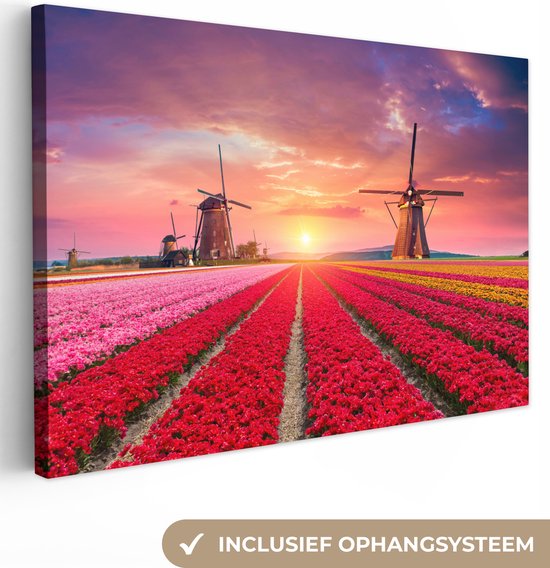 Moulin à peinture sur toile - Fleurs - Coucher de soleil - Hollandais - 60x40 cm - Décoration murale