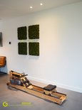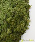 La mousse de renne, Cladonia Stellaris, a de nombreuses petites branches en forme de brindille et une apparence très douce et en pente. Un cadre ou un mur dans cette mousse ressemble à un paysage forestier vu d'en haut, avec toutes sortes de pointes de formes différentes. Ces structures ramifiées rendent la mousse idéale comme panneau acoustique - les ondes sonores sont complètement absorbées. La couleur la plus brillante est Spring Green Reindeer Moss, colorée avec des pigments naturels. Une variante plus naturelle est le vert mousse, c'est la teinte la plus choisie dans la mousse de renne en raison de sa couleur verte fraîche et de ses magnifiques plateaux en forme de coussin.