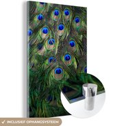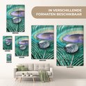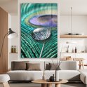 MuchoWow® Peinture sur verre 100x150 cm - Peinture sur verre acrylique - Gros plan d'une goutte d'eau sur une plume de paon - Photo sur verre - Peintures