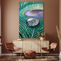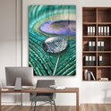 Tableau sur verre - Gros plan d'une goutte d'eau sur une plume de paon - Salon - Chambre