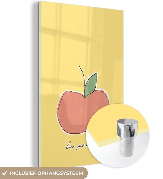 MuchoWow® Peinture sur verre 100x150 cm - Peinture sur verre acrylique - Pomme - Fruit - Texte - Photo sur verre - Peintures