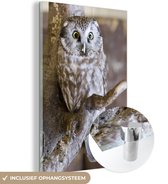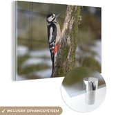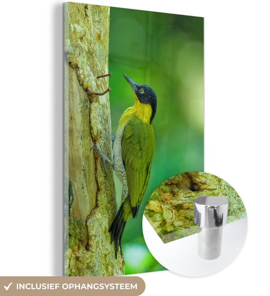MuchoWow® Peinture sur verre 100x150 cm - Peinture sur verre acrylique - Un beau pic terrestre à fourrure jaune grimpe verticalement sur un arbre - Photo sur verre - Peintures