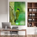Peinture sur verre - Un beau pic terrestre à fourrure jaune grimpe verticalement sur un arbre - Salon - Chambre