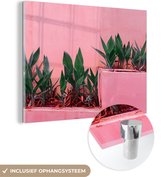 MuchoWow® Peinture sur verre 120x160 cm - Peinture sur verre acrylique - Été - Rose - Plantes - Photo sur verre - Peintures