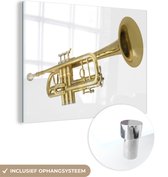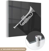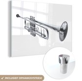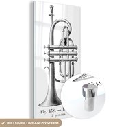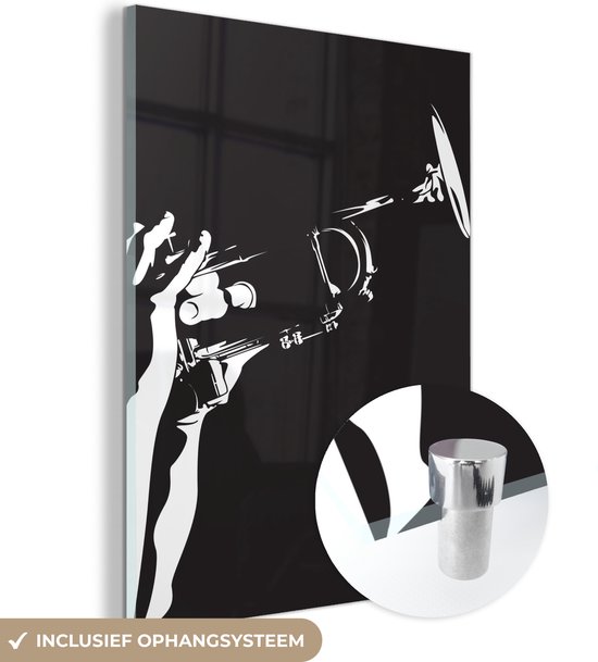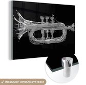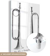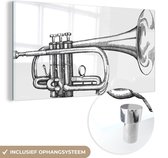 MuchoWow® Peinture sur verre 120x160 cm - Peinture sur verre acrylique - Illustration d'une trompette tenue en noir et blanc - Photo sur verre - Peintures