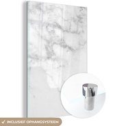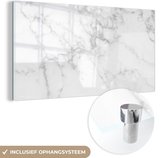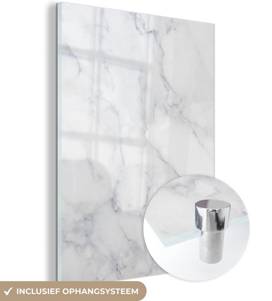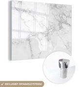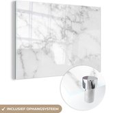 MuchoWow® Peinture sur verre 120x160 cm - Peinture sur verre acrylique - Marbre - Wit - Grijs - Luxe - Aspect marbre - Pierre - Photo sur verre - Peintures