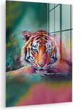 MuchoWow® Peinture sur verre 120x160 cm - Peinture sur verre acrylique - Tigre - Peinture à l'huile - Animaux - Art - Photo sur verre - Peintures