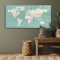 Tableau sur verre - Wereldkaart - Blauw - Atlas - Salon - Chambre