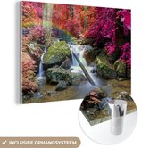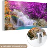 MuchoWow® Peinture sur verre 120x80 cm - Peinture sur verre acrylique - Cascade - Arbres - Arc-en-ciel - Violet - Photo sur verre - Peintures