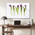 MuchoWow® Peinture sur verre 120x80 cm - Peinture sur verre acrylique - Cinq tulipes d'affilée - Photo sur verre - Peintures