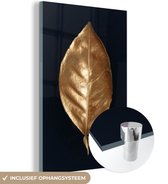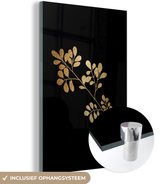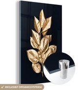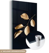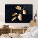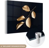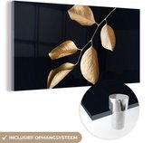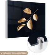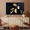 MuchoWow® Peinture sur verre 120x80 cm - Peinture sur verre - Feuilles - Branche - Or - Luxe - Photo sur verre acrylique - Peintures