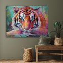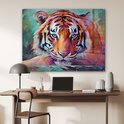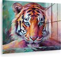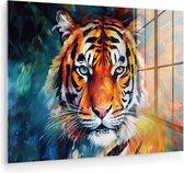 MuchoWow® Peinture sur verre 120x90 cm - Peinture acrylique sur verre - Tigre - Peinture à l'huile - Animaux - Art - Photo sur verre - Décoration murale salon - Décoration murale chambre - Peintures