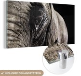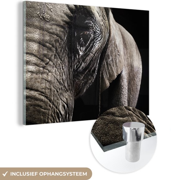MuchoWow® Peinture sur verre 120x90 cm - Peinture sur verre acrylique - Éléphant - Animaux - Gros plan - Zwart - Photo sur verre - Peintures