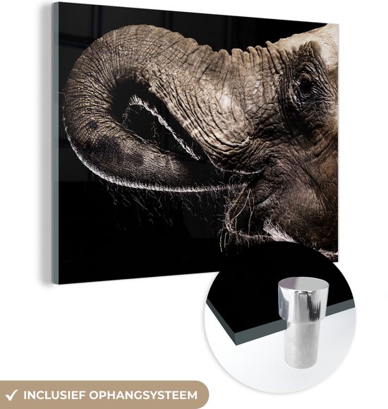MuchoWow® Peinture sur verre 120x90 cm - Peinture sur verre acrylique - Éléphant - Animaux - Zwart - Nature - Photo sur verre - Peintures