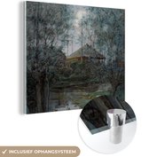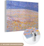 MuchoWow® Peinture sur verre 120x90 cm - Peinture sur verre acrylique - Ferme avec trois grands arbres au premier plan - Piet Mondrian - Photo sur verre - Peintures