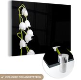 MuchoWow® Peinture sur verre 120x90 cm - Peinture sur verre acrylique - Muguet - Fleurs - Zwart - Flora - Photo sur verre - Peintures