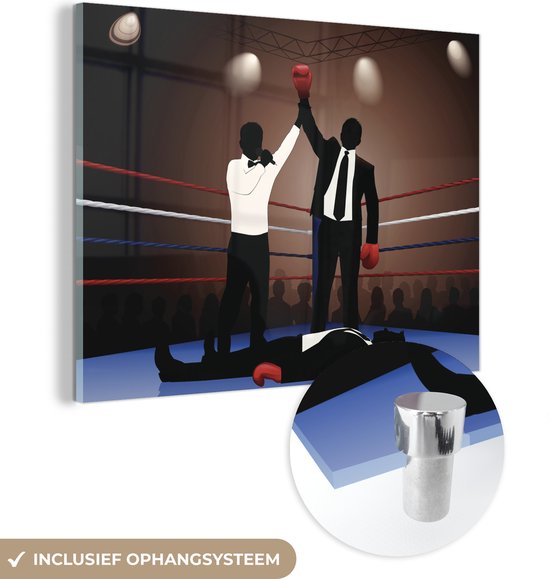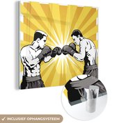 MuchoWow® Peinture sur verre 120x90 cm - Peinture sur verre acrylique - Une illustration de deux hommes d'affaires boxant - Photo sur verre - Peintures