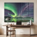 Tableau sur verre - Aurores boréales - Glace - Violet - Vert - Salon - Chambre