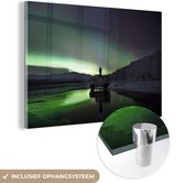 MuchoWow® Peinture sur verre 150x100 cm - Peinture sur verre acrylique - Aurores boréales - Glace - Violet - Vert - Photo sur verre - Peintures