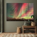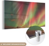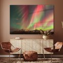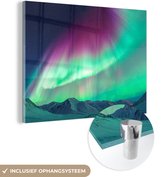 MuchoWow® Peinture sur verre 150x100 cm - Peinture sur verre acrylique - Aurores boréales - Vert - Rose - Berg - Photo sur verre - Peintures