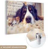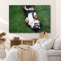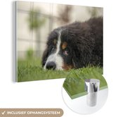 MuchoWow® Peinture sur verre 150x100 cm - Peinture sur verre acrylique - Bouvier Berner allongé confortablement sur l'herbe - Photo sur verre - Peintures