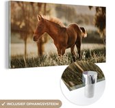 MuchoWow® Peinture sur verre 150x100 cm - Peinture sur verre acrylique - Cheval - Lumière - Prairie - Photo sur verre - Peintures
