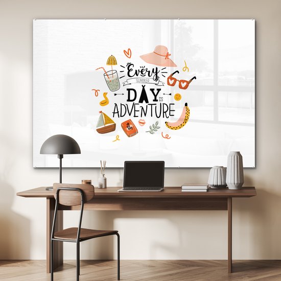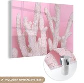 MuchoWow® Peinture sur verre 150x100 cm - Peinture sur verre acrylique - Été - Chapeau - Rose - Photo sur verre - Peintures
