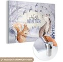 Peinture d'un renard et d'un écureuil avec la citation 'Hello Winter'.Spécifications produit