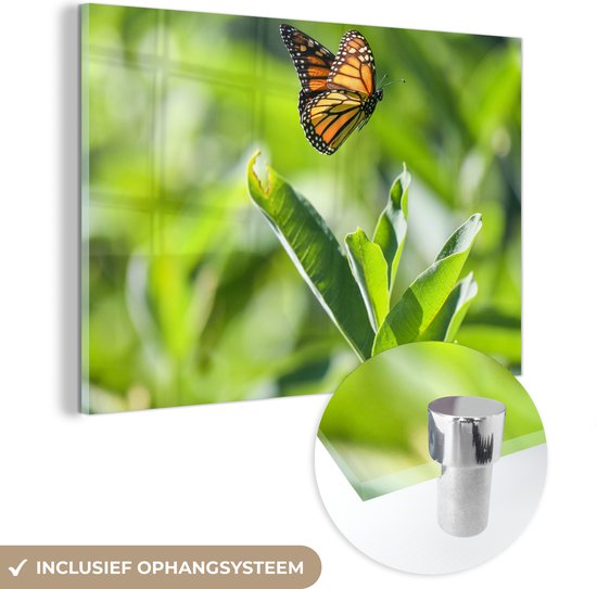 MuchoWow® Peinture sur verre 150x100 cm - Peinture sur verre acrylique - Papillon monarque volant - Photo sur verre - Peintures
