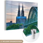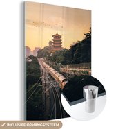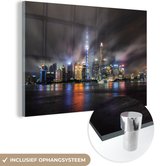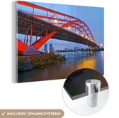 MuchoWow® Peinture sur verre 150x100 cm - Peinture sur verre acrylique - Pont Wuhan-Yangtze de couleur Blauw la nuit à Wuhan - Photo sur verre - Peintures