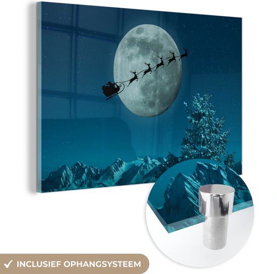 MuchoWow® Peinture sur verre 150x100 cm - Peinture sur verre acrylique - Rennes avec le Père Noël dans les airs - Photo sur verre - Peintures