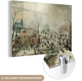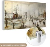 MuchoWow® Peinture sur verre 150x100 cm - Peinture sur verre acrylique - Scène de glace dans une brasserie - Hendrik Avercamp - Photo sur verre - Peintures