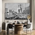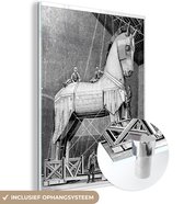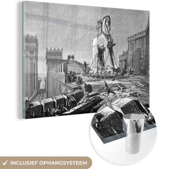 MuchoWow® Peinture sur verre 150x100 cm - Peinture sur verre acrylique - Une illustration antique en noir et blanc du cheval de Troie - Photo sur verre - Peintures