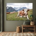 MuchoWow® Peinture sur verre 150x100 cm - Peinture sur verre acrylique - Vaches - Prairie - Alpes - Photo sur verre - Peintures